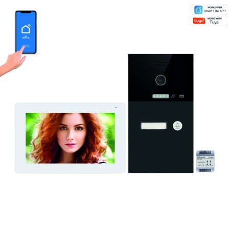 Kit Videoporteiro Tuya 2 fios 7'' WiFi - monitor branco